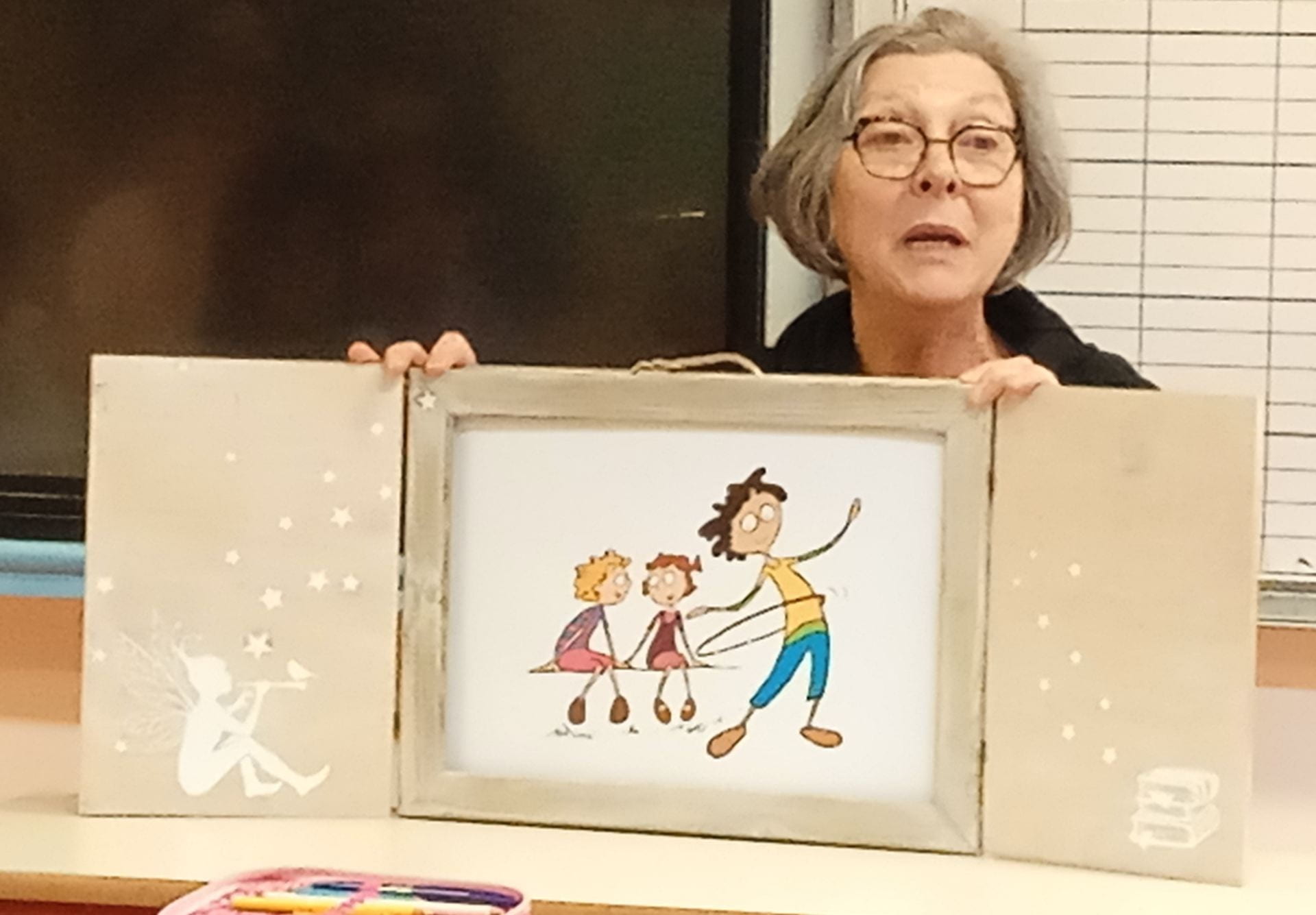 Ce fut un instant magique lorsqu’elle a ouvert son “kamishibaï” (théâtre d’histoires japonais) pour raconter “Mamie chocolat”. “Encore, encore … Quand tu reviens ? ” a-t-on pu entendre quand il a fallu saluer Andrée puisqu’elle devait rejoindre la classe de CE1.
